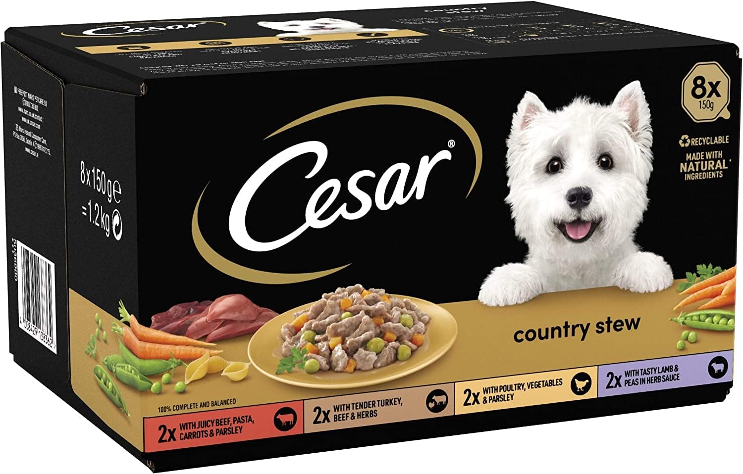 - Cesar Country Stew Mixed Selection complete wet dog food is a range of hearty and healthy dishes with a lovingly homemade feel, all in recyclable packaging