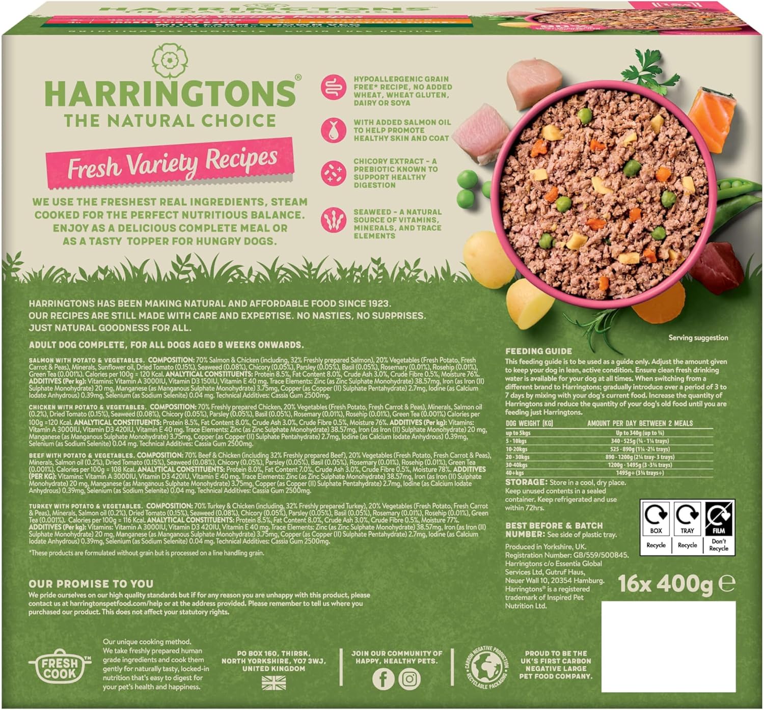 Harringtons Complete Wet Tray Grain Free Hypoallergenic Adult Dog Food Classics Variety Pack 16x400g - Salmon, Beef, chicken & Turkey- Made with All Natural Ingredients (Packaging may vary)